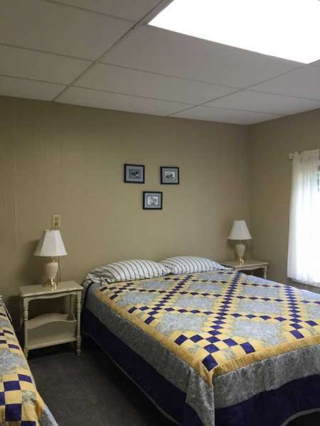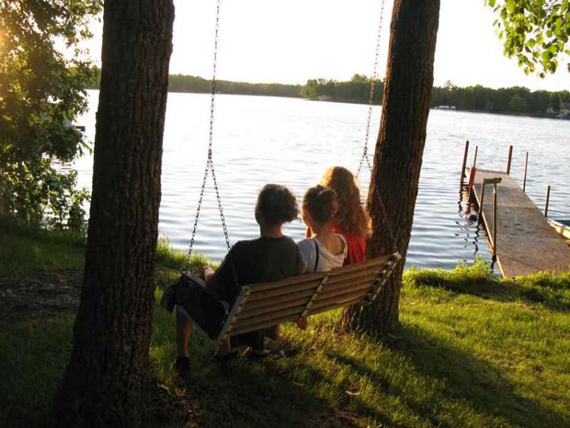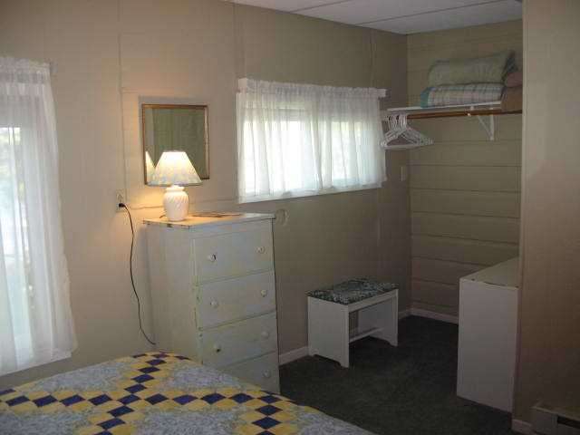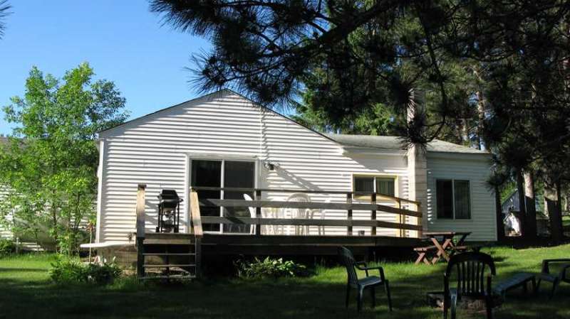 OutsideCabin 10 was purchased late summer of 2008. Completely remodeled – it is our Beach House by the lake. Located just a short distance from the main resort – it is quite private – yet just a short walk will bring you to all the amenities here at Breezy Point. The cabin has a complete kitchen, gas-log fireplace, full bath, and two bedrooms. The living area has a Futon. One bedroom has a queen bed, the other has a queen and a single bed. There are over head fans in the dining and living areas. It is about twice the size of our other two-bedroom cabins. Will sleep 7 people comfortably. Air Conditioned. Pets are accepted in this cabin. Outside shaded kennel. Enjoy grilling on the Weber Gas grill located on the deck. Table and chairs on the deck offer the option of outdoor dining. Relax around an evening campfire at your own fire-ring. Just a gentle slope to the lake – hard sand bottom. Life by the lake – it just doesn’t get any better!